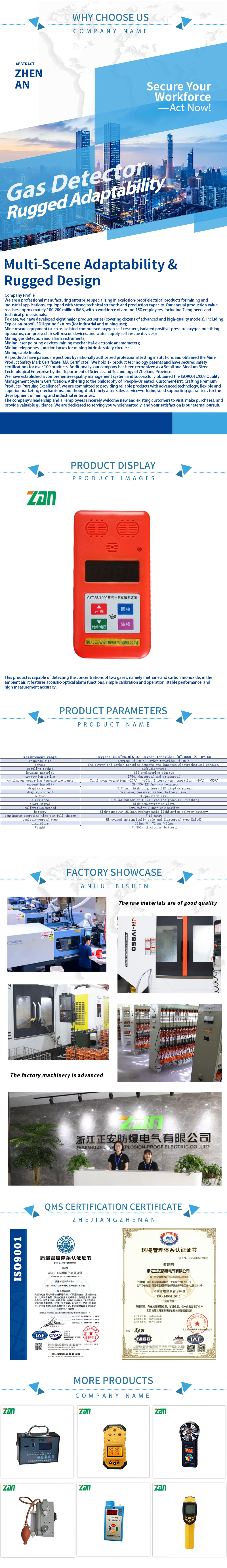 Le produit est conforme aux normes de sécurité nationales et industrielles en vigueur, avec un contrôle qualité strict tout au long du processus de production. Il est largement applicable à la détection de gaz nocifs courants dans les scénarios miniers et peut être adapté de manière flexible aux différentes opérations minières et exigences de gestion de la sécurité. Qu'il s'agisse de détection de patrouille quotidienne ou de surveillance de point fixe, ce détecteur de gaz peut exercer d'excellentes performances, offrant ainsi une solide barrière de sécurité pour la production minière.